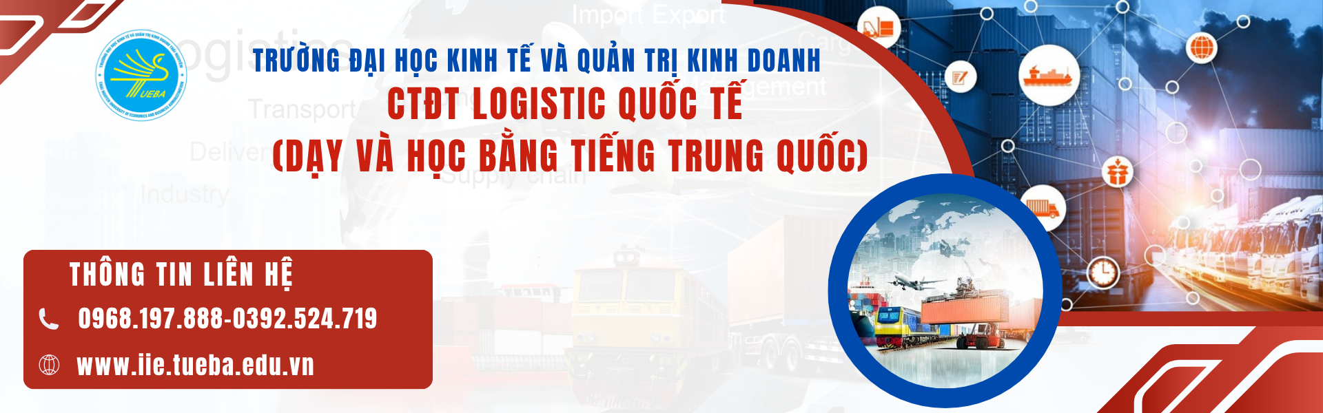 Chương trình đào tạo Logistics Quốc tế dạy và học bằng tiếng Trung tại TUEBA được thiết kế theo hướng song ngữ Việt – Trung (50% tiếng Việt, 50% tiếng Trung Quốc), giúp sinh viên vừa nắm vững kiến thức chuyên ngành vừa phát triển năng lực ngoại ngữ, đáp ứng nhu cầu làm việc tại các doanh nghiệp logistics, xuất nhập khẩu và doanh nghiệp FDI.