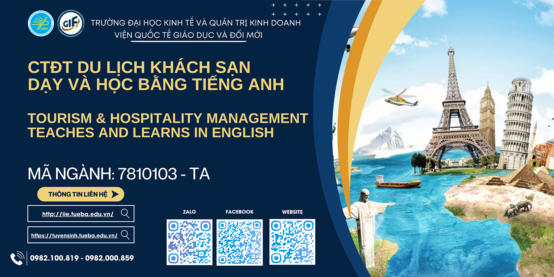 (Tourism & Hospitality management - thuộc ngành Quản trị du lịch và lữ hành | Mã ngành: 7810103)